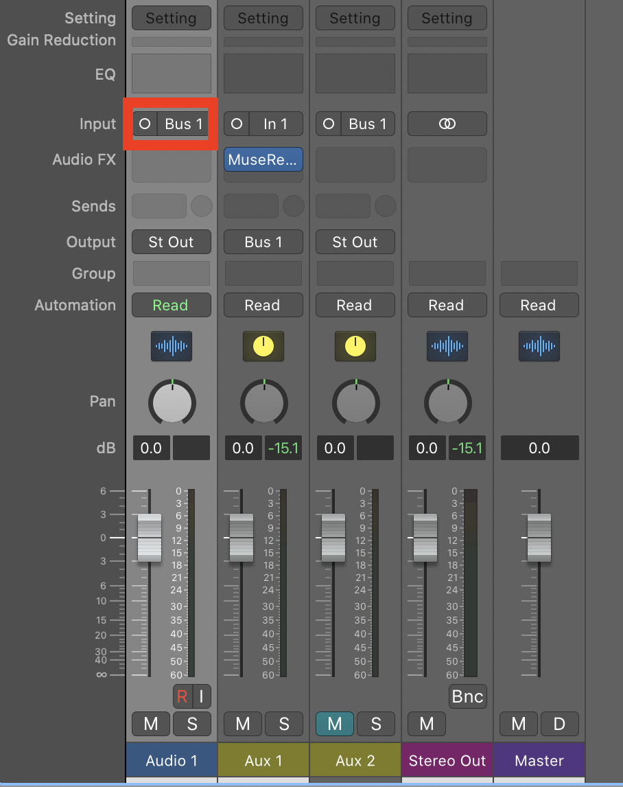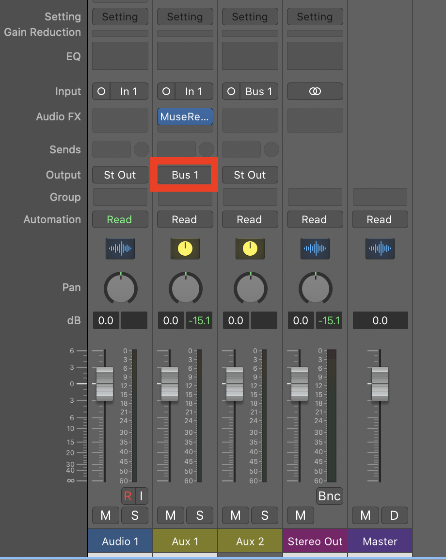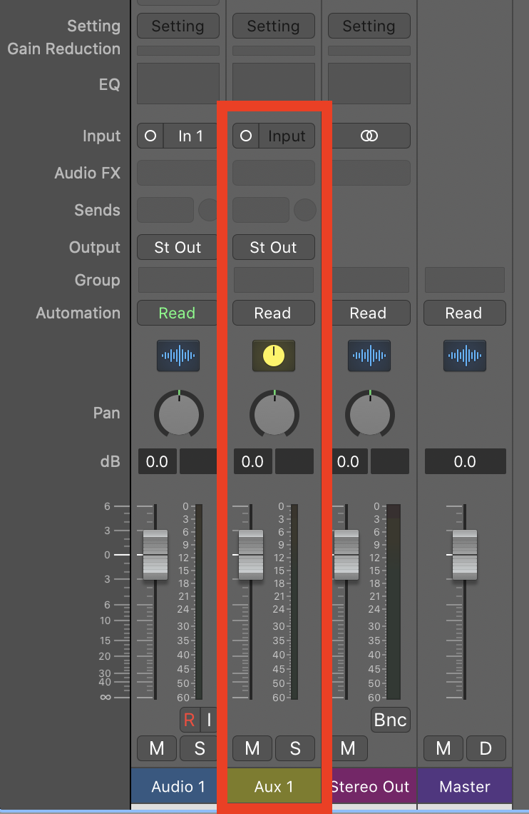 4. Assign the output of the AUX track to a bus