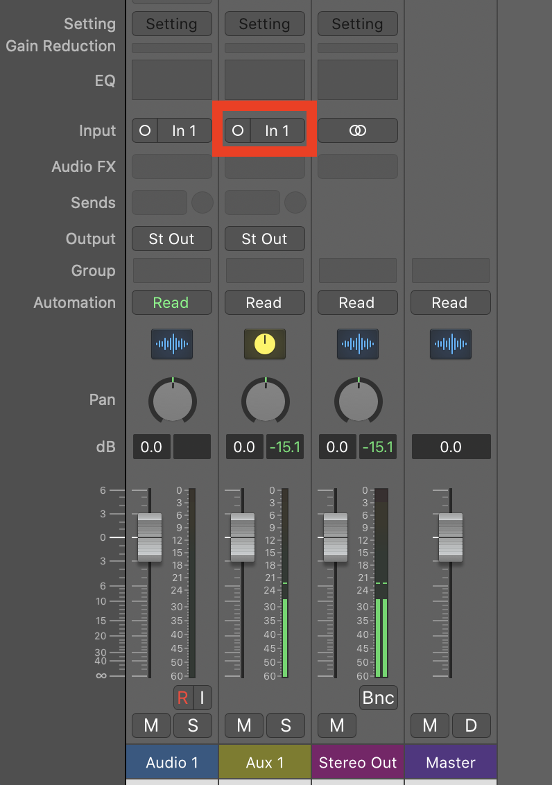 2. Assign an audio input to the AUX track