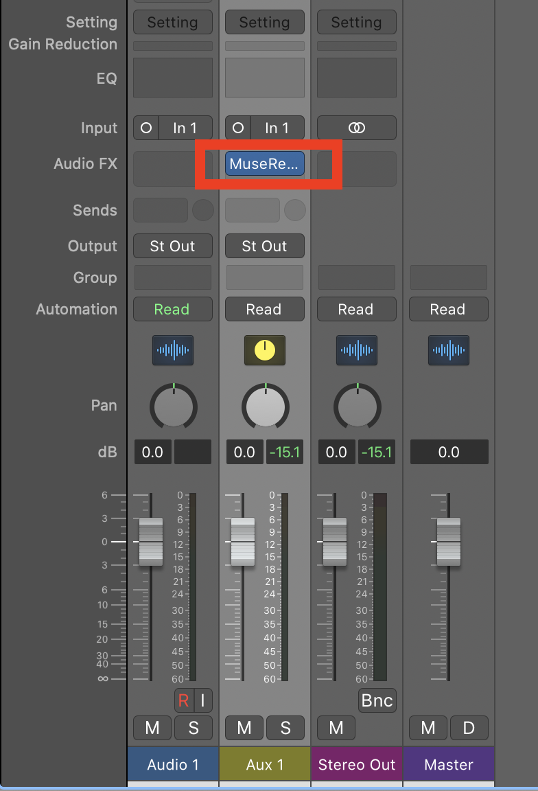 3. Add the Muse Recording Plugin to the AUX track