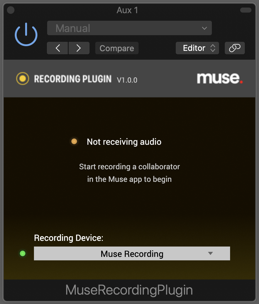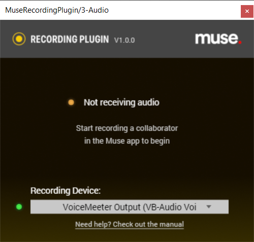 NOTE: You only need one instance of the Muse Recording Plugin running. Multiple plugins can cause unwanted behavior and affect the status messages in the plugin.